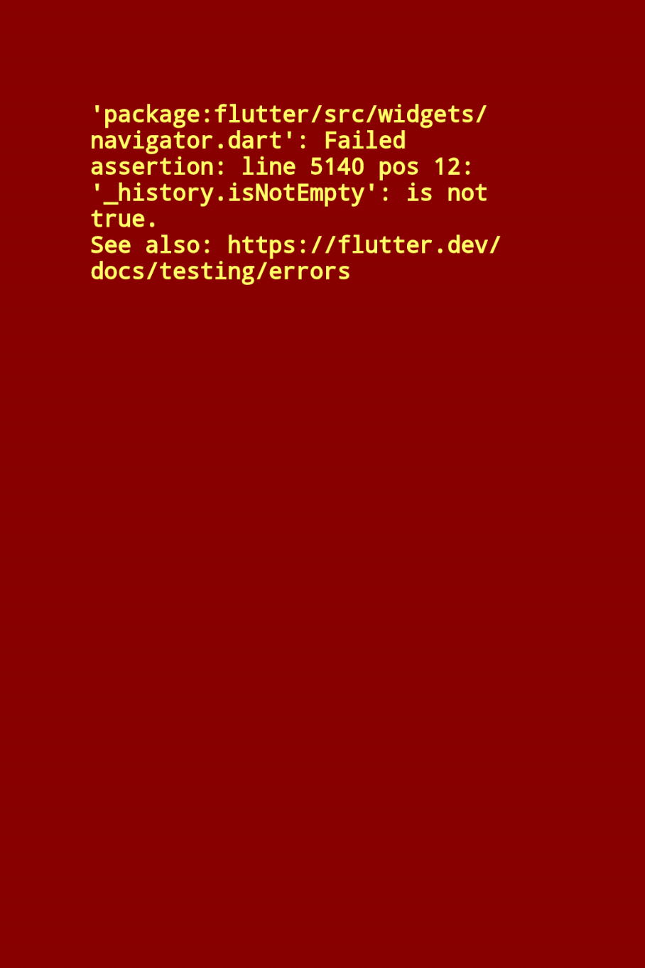 하위 Navigator에서 showDialog를 이용해 AlertDialog를 띄우는 상황에 action을 이용해 dialog와 dialog를 띄운 페이지를 pop을 하기위해 popUntil을 이용했다. (참고로 popUntil로 이동할 route의 이름은 route엔 존재하지 않음)