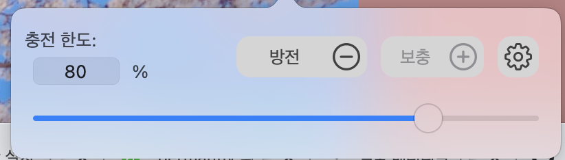 위 이미지처럼 설정하면 80%가 넘어가게 충전되는 것을 막아준다.